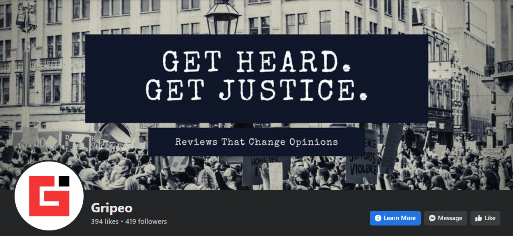 The same for Facebook, they present the company as “Get Heard. Get Justice”.