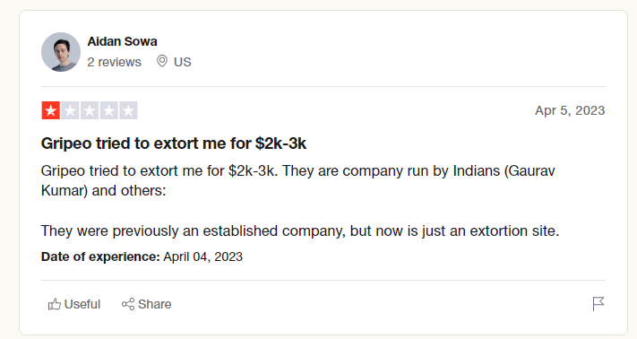 Also, the Gripeo company is based in the US? read our previous article Gripeo Fake Reviews, another huge Indian scam, how to remove