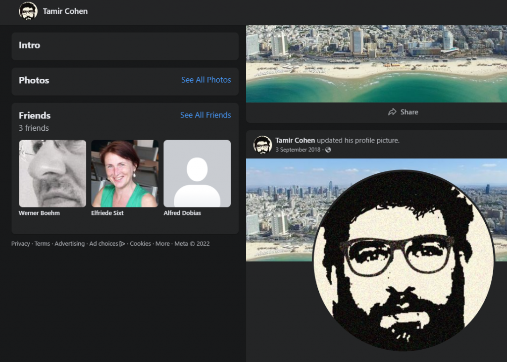 but on his Facebook https://www.facebook.com/tamir.cohen.9210 just 3 mafia friends and an account created in 2018 and never used. A clear fake account!
